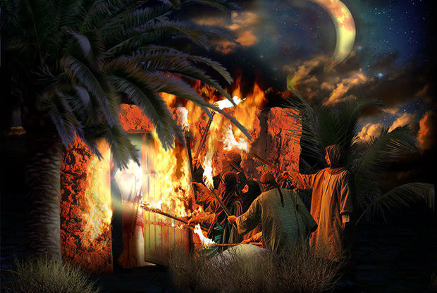 Namrud put Prophet Ibrahim ع in fire, but still He ع did not revolt back, Why ? Was Prophet Ibrahim ع was (Nauzobillah) a coward ? Or do we deny the fact (of this event of putting Prophet Ibrahim ع in fire). The sole reason for Prophet Ibrahim ع remaining silent was because He ع lacked supporters. If He ع would have rebelled, then he would fight Namrud with what ? So what did Prophet Ibrahim ع did ? As mentioned in the Quranic verse [19:48], "He ع withdrew himself from his people"